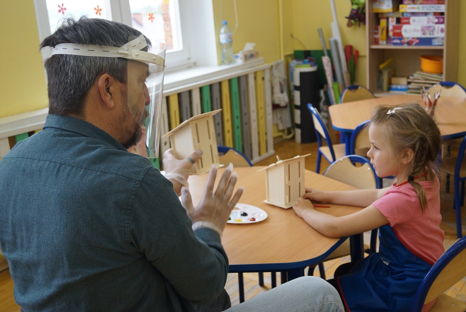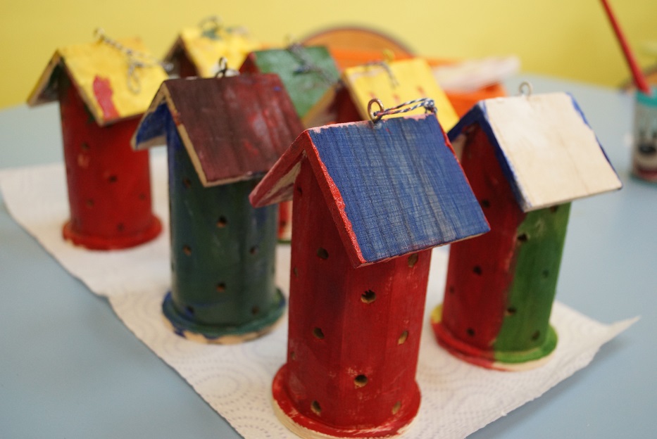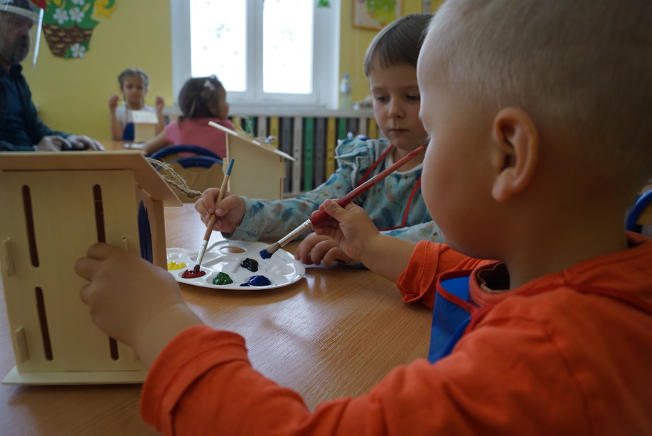 W dniu dzisiejszym dzieci uczęszczające do przedszkola wzięły udział w warsztatach plastycznych w ramach projektu Stowarzyszenia Marzenie pt. „Pszczółka Maja –pielęgnowanie lokalnego dziedzictwa kulinarnego” dofinansowanego w ramach konkursu nr 2/2020 z budżetu Gminy Kcynia. W ramach warsztatów, po okiem plastyka pana Jacka Gackiego, z zachowaniem zasad reżimu sanitarnego, dzieci malowały domki dla owadów. W podziale na dwie grupy powstawały domki dla motyli, biedronek, pszczółek. Podczas zajęć mówiono m.in. o potrzebie ochrony naszych małych przyjaciół. Dzieci zabiorą ze sobą prace do domów, a zadaniem rodziców będzie zawiesić domki na drzewku tak, by stanowiły schronienie dla owadów. W tym miejscu kierujemy prośbę do rodziców, by wykonali fotografię takiego umieszczonego na drzewku domku i załączyli je w formie zdjęcia w komentarzu pod informacją o warsztatach na profilu przedszkola na FB.